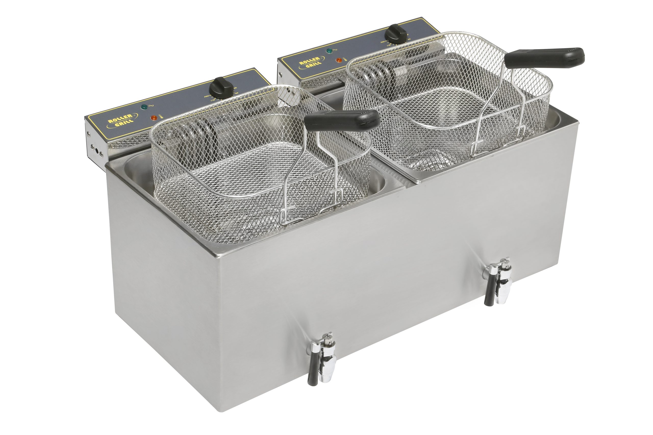 מטגנת (צ'יפסר) חשמלית דלפקית עם 2 אמבטיות שמן נפרדות 12 + 12 ל' עם ברז ריקון