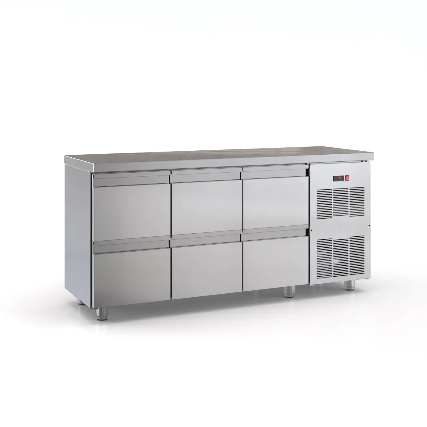 מקרר דלפקי מנירוסטה עם 6 מגירות קירור ופיקוד דיגיטלי