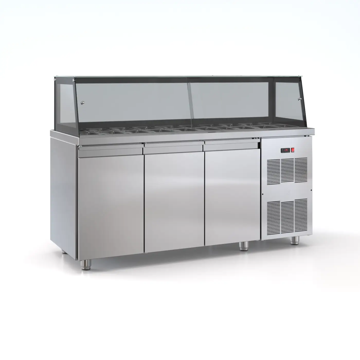 מקרר סלטיה מנירוסטה עם 3 דלתות קירור, עם חופת זכוכית ותאורת לד