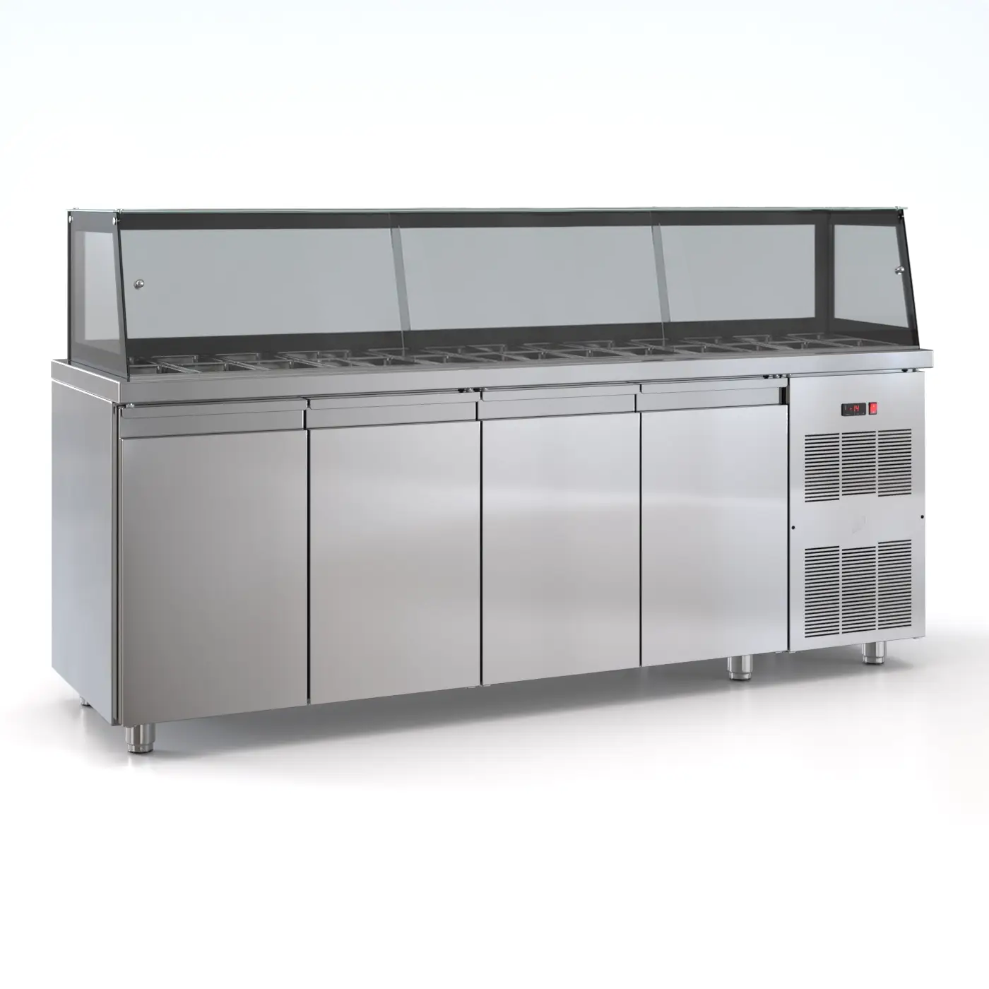 מקרר סלטיה מנירוסטה עם 4 דלתות קירור, עם חופת זכוכית ותאורת לד